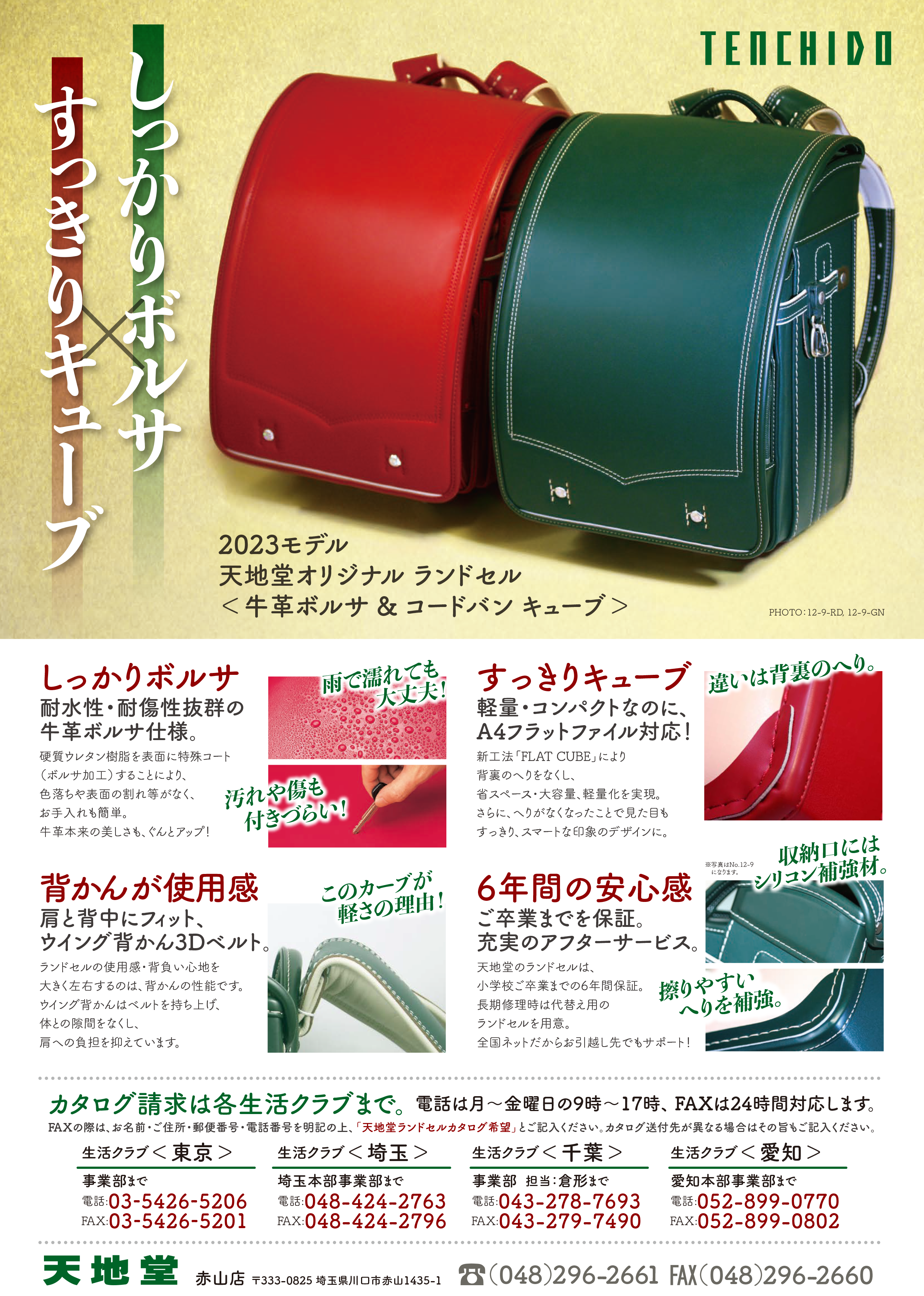生活クラブ埼玉の組合員は、天地堂のランドセルを特典のお見積りで購入することができます。