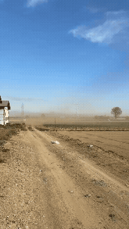 大風の影響で、畑の土が舞い、畑ではゴーグルをしながら、ネギの収穫を続けています(◎_◎;)