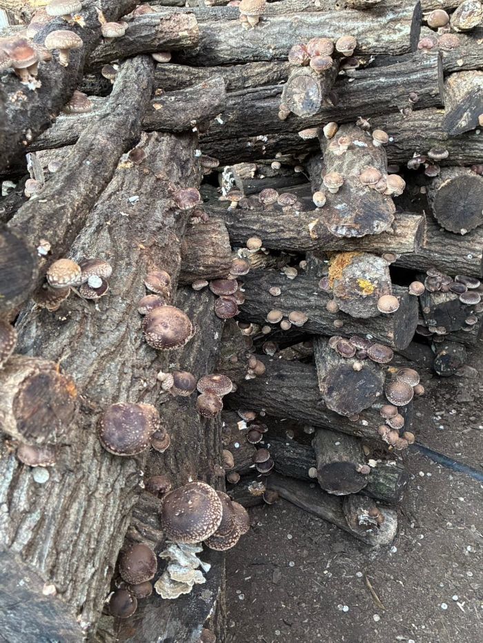 通常はコナラの原木で育てますが、今年は試験的にクヌギの原木で栽培してみました。