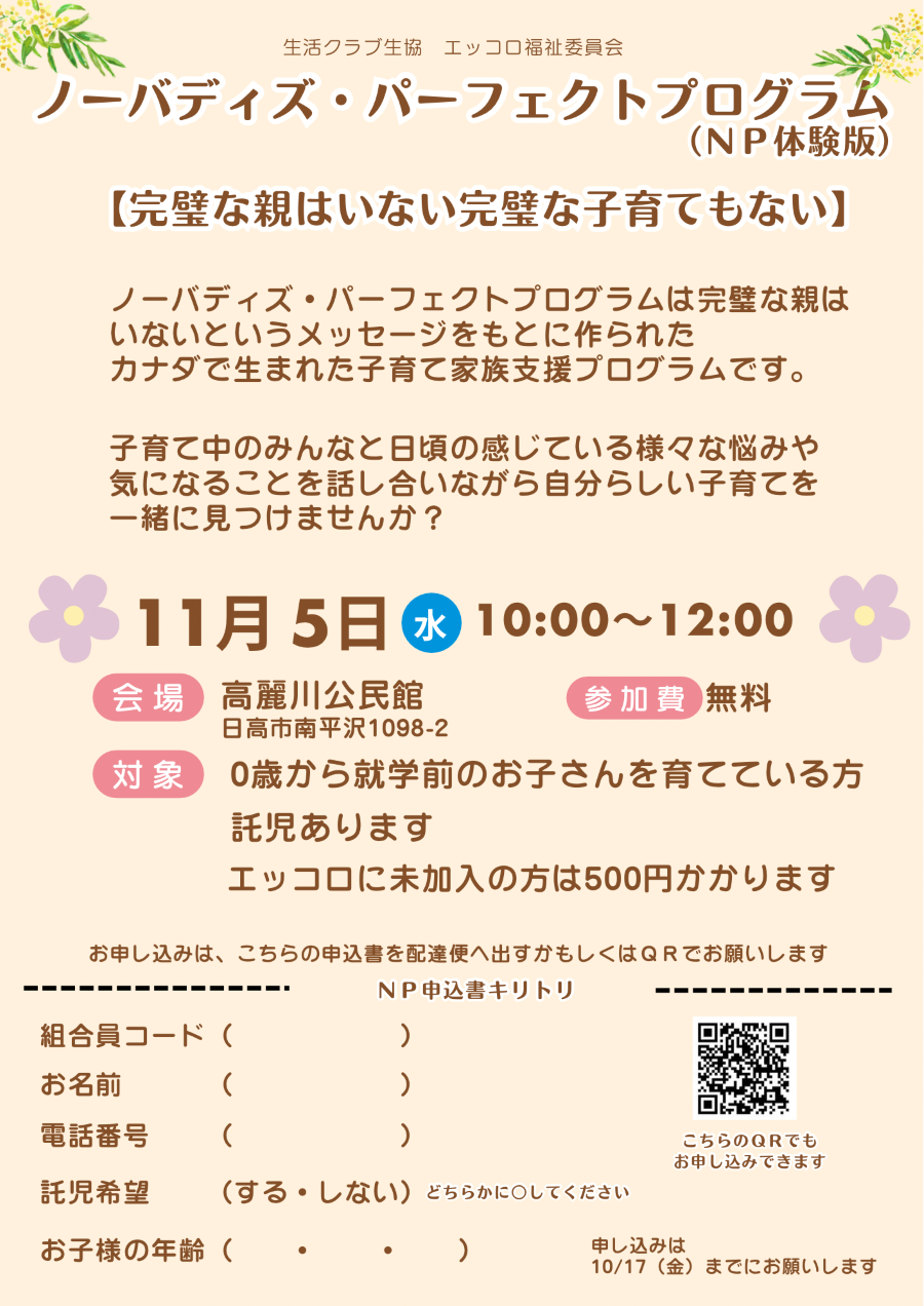 締切:申込み、託児共に10/17(金)