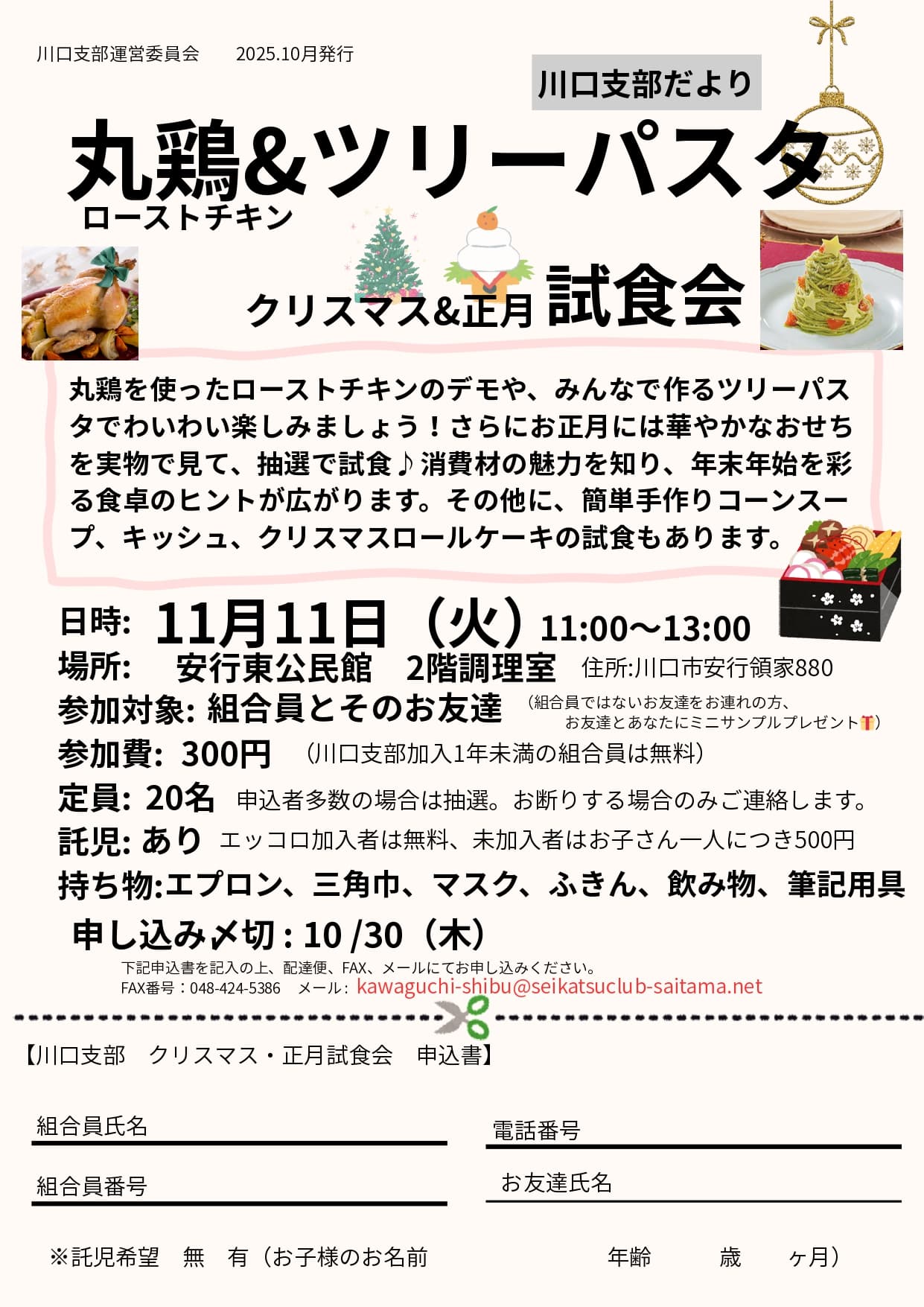 参加費:300円(川口支部加入1年未満の組合員は無料)