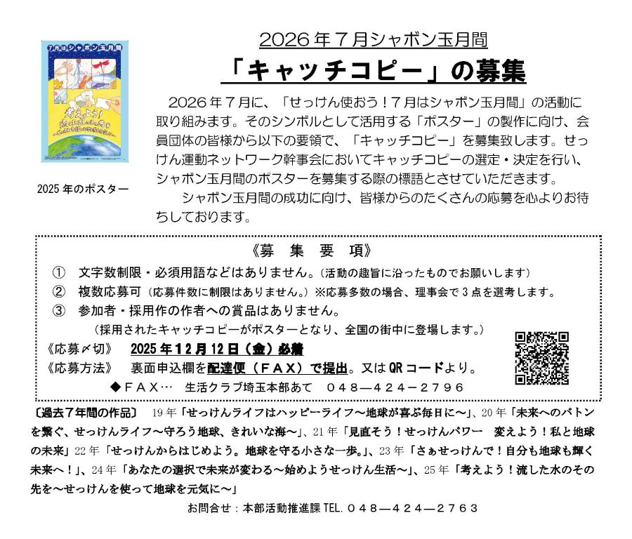 2026年7月シャボン玉月間「キャッチコピー」の募集