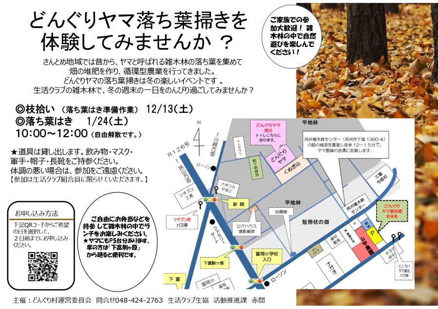 どんぐりヤマ落ち葉掃きを体験してみませんか?
