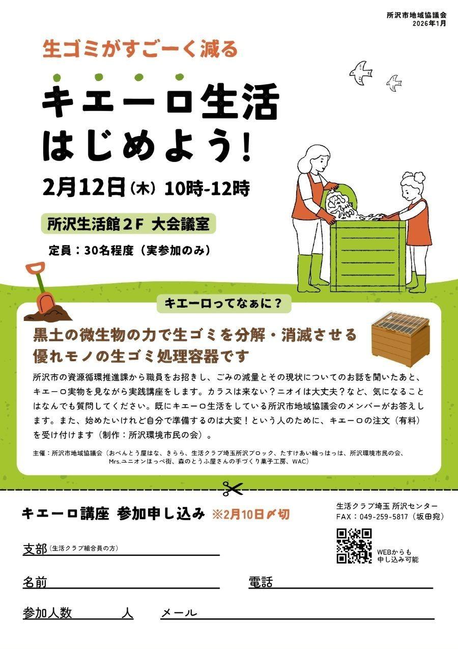 所沢市の資源循環推進課から職員をお招きし、ごみの減量とその現状についてのお話を聞いたあと、キエーロ実物を見ながら実践講座をします。