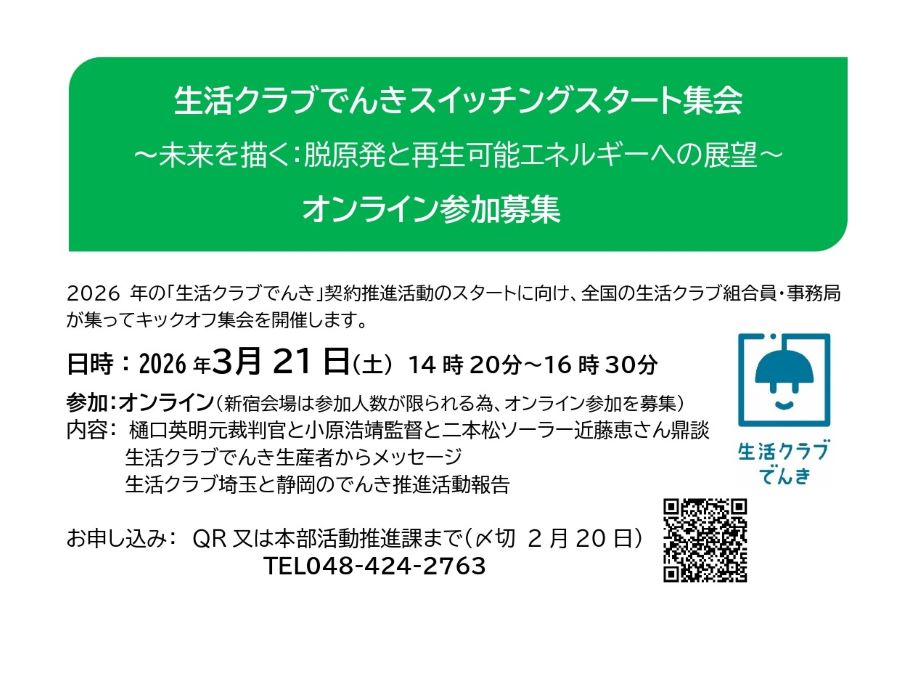 生活クラブでんきスイッチングスタート集会【オンライン参加募集】