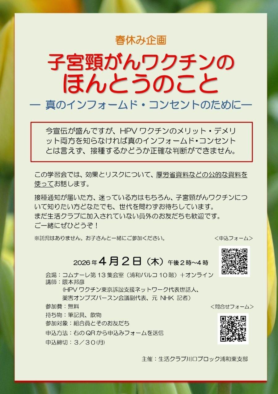 「子宮頸がんワクチンのほんとうのこと」-真のインフォームド・コンセントのために-