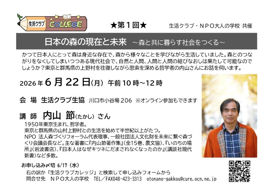 内山 節さん講演会 日本の森の現在と未来 ~森と共に暮らす社会をつくる~